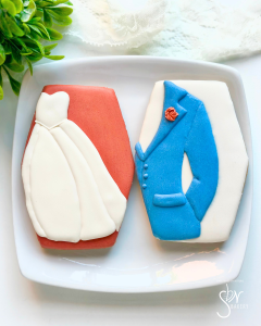 All cookies are individually heat-sealed and placed in a bakery box adorned with a bow or tag. Custom sets start at $55/dozen and are sold in increments of 12.