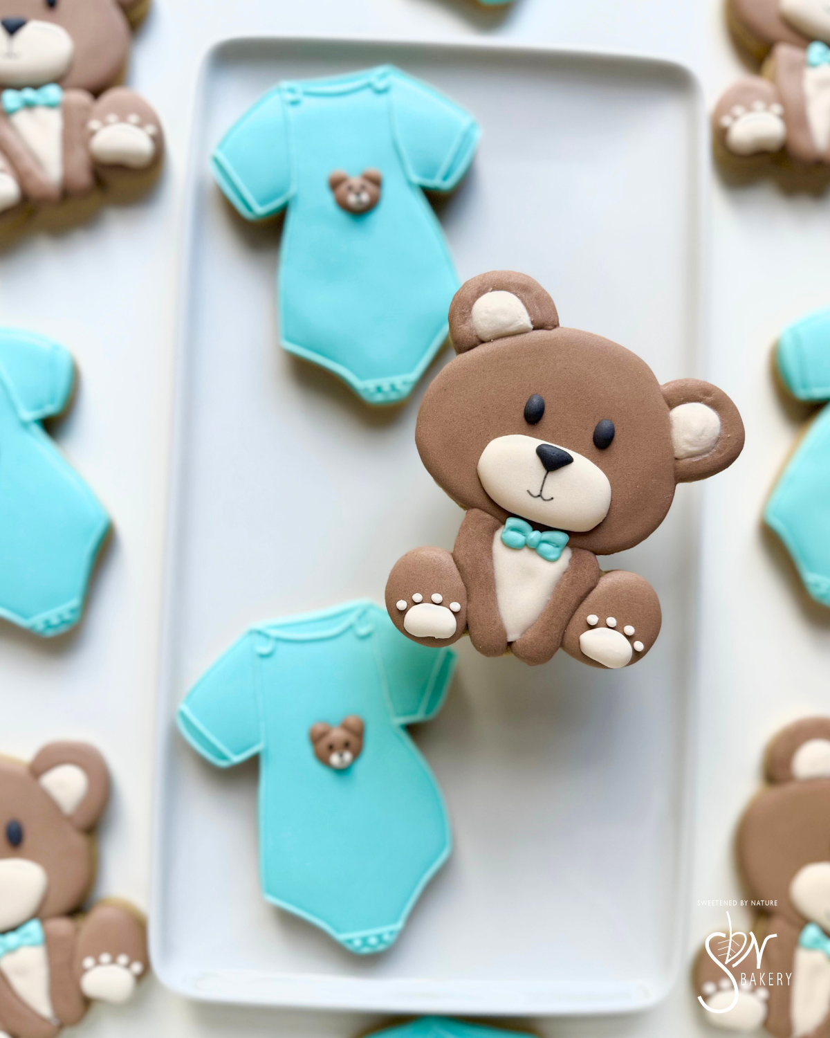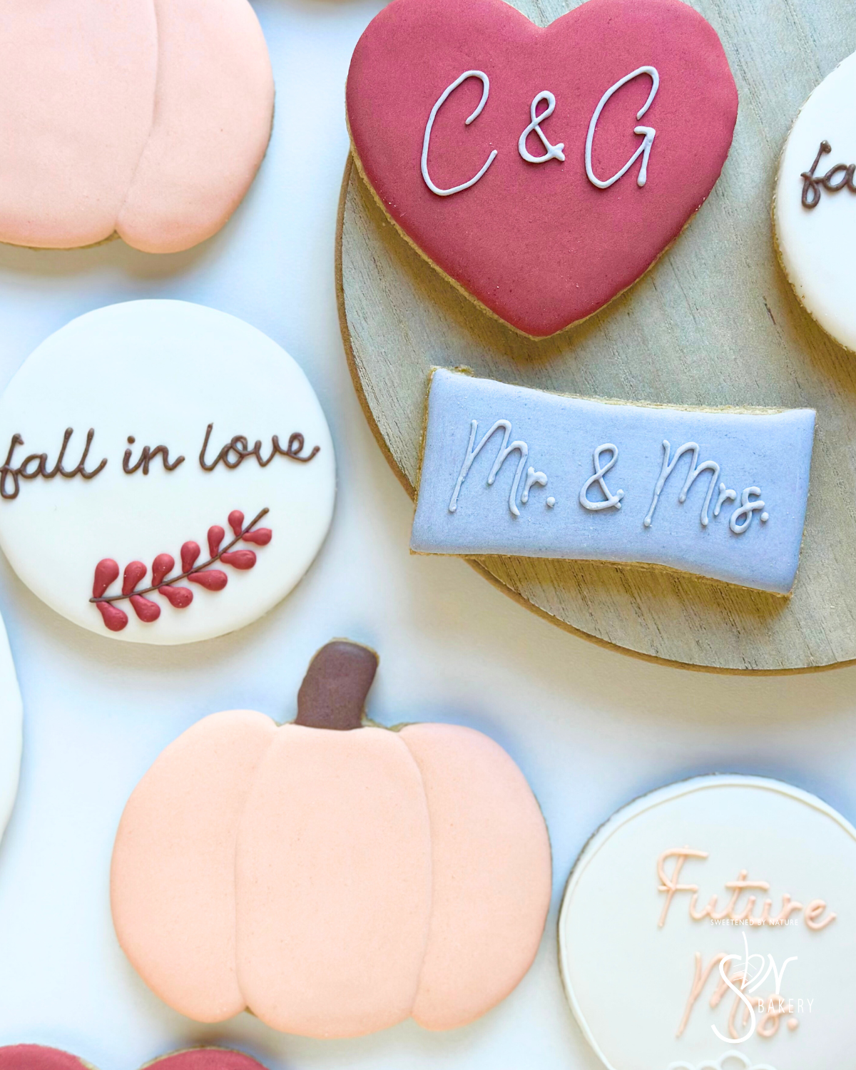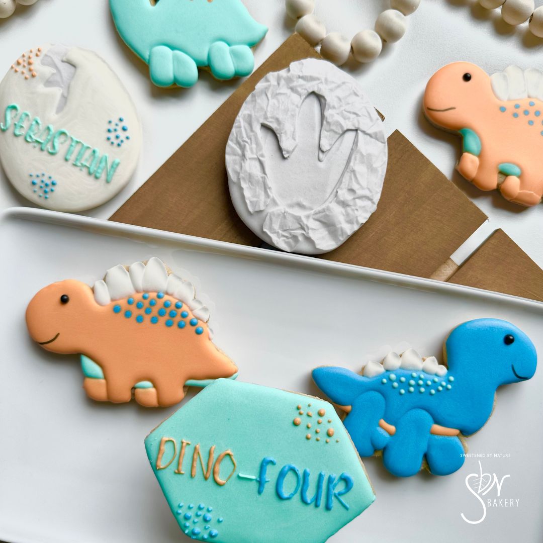 All cookies are individually heat-sealed and placed in a bakery box adorned with a bow or tag. Custom sets start at $55/dozen and are sold in increments of 12.